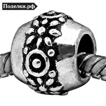 Металлическая бусина Пандора Бочонок с цветами 0006630 серебряный цвет 10x10 мм