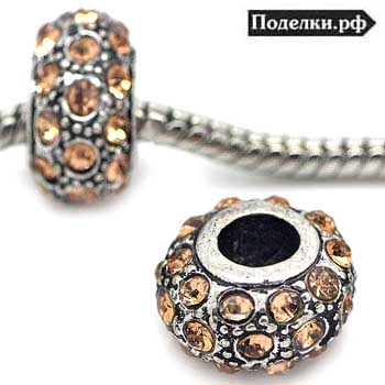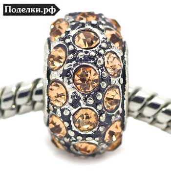 Металлическая бусина Пандора Эффектная 0006635 серебряный цвет со стразами шампань 13x8 мм