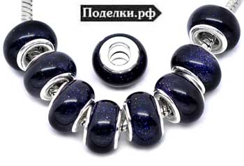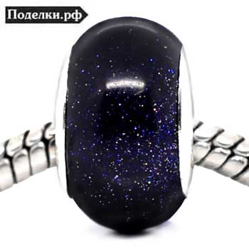 Натуральная бусина Пандора Авантюрин 0006639 синего цвета 14x9 мм