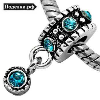 Металлическая бусина-бейл с подвеской Пандора 0006642 серебряный цвет с голубыми стразами 21x10 мм