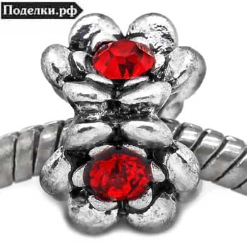 Металлическая бусина Пандора из цветов 0006645 серебряный цвет с красными стразами 13x9 мм