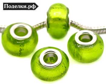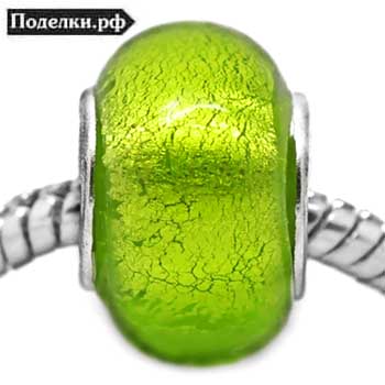 Стеклянная бусина Пандора 0006657 салатный прозрачный с блестящей сердцевиной 14x10 мм