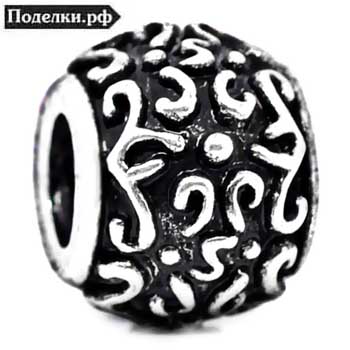 Металлическая бусина Пандора Бочонок с узором крупный 0006666 серебряный цвет 13x10 мм