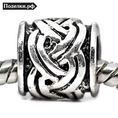 Металлическая бусина Пандора Цилиндр плетеный 0006669 серебряный цвет 10x9 мм