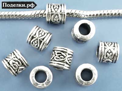 Металлическая бусина Пандора Цилиндр узорный 0006670 серебряный цвет 7x7 мм