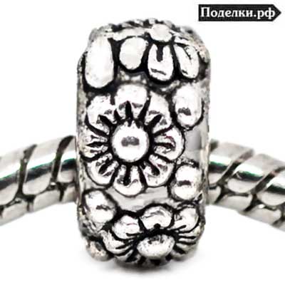 Металлическая бусина Пандора Шайба цветочная 0006672 серебряный цвет 11x6 мм