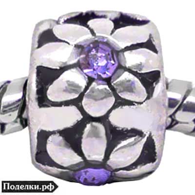 Металлическая бусина Пандора 0006685 серебряный цвет с сиреневыми стразами 12x8 мм