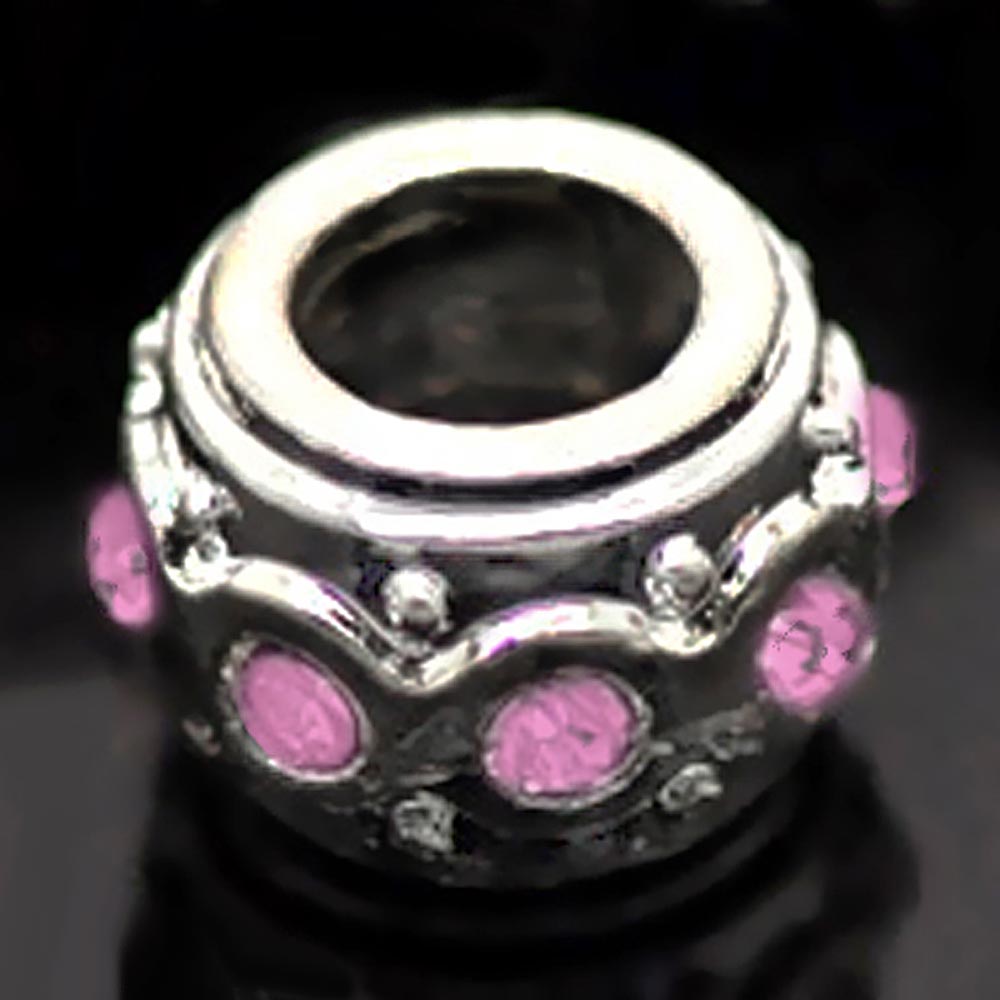 Металлическая бусина Пандора 0006690 серебряный цвет с розовыми стразами 11x7 мм