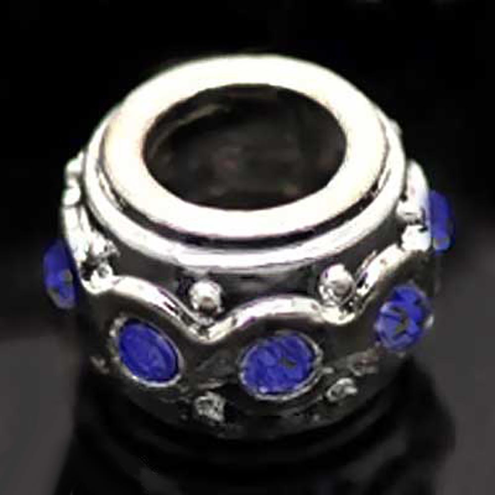 Металлическая бусина Пандора 0006692 серебряный цвет с синими стразами 11x7 мм