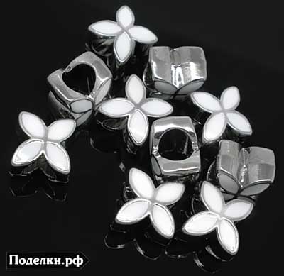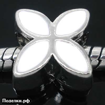 Металлическая бусина Пандора Клевер 0006699 серебряный цвет с белой эмалью 13x10 мм