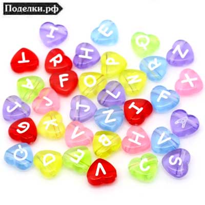 Акриловые бусины Сердца Алфавит A-Z 0006705 разноцветные 11x10 мм 26 шт