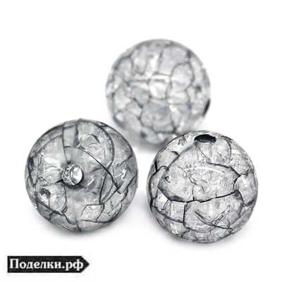 Акриловая бусина Шарик Ледяной 0006740 прозрачный цвет с серыми трещинами 12 мм