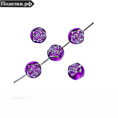 Акриловая бусина Шарик-розочка 0006765 фиолетовый с серебром цвет 8 мм