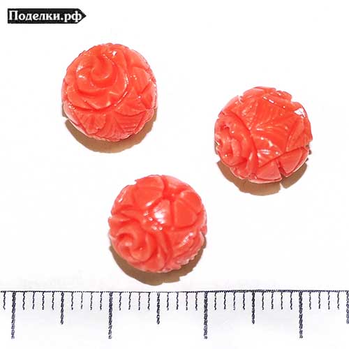 Акриловая бусина Шарик резной 0006777 коралловый матовый 10 мм