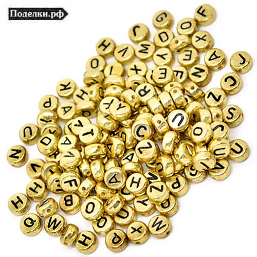 Акриловые бусины Таблетки Алфавит A-Z 0006791 золотого цвета 7x3 мм 26 шт