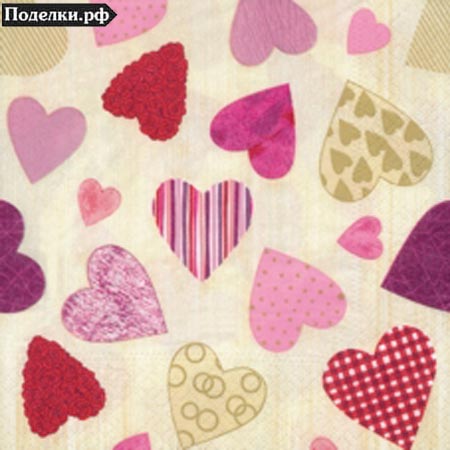 Салфетка Сердечки 0006802 трехслойная 33x33 см