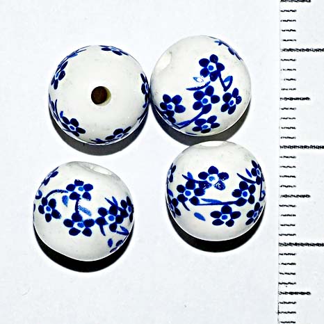 Керамическая бусина белая с синими цветами 0007009 шарик 12 мм