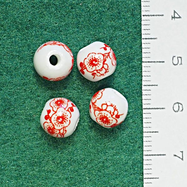 Керамическая бусина белая ветка сакуры 0007001 шарик 9 мм