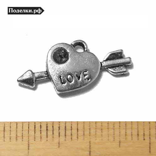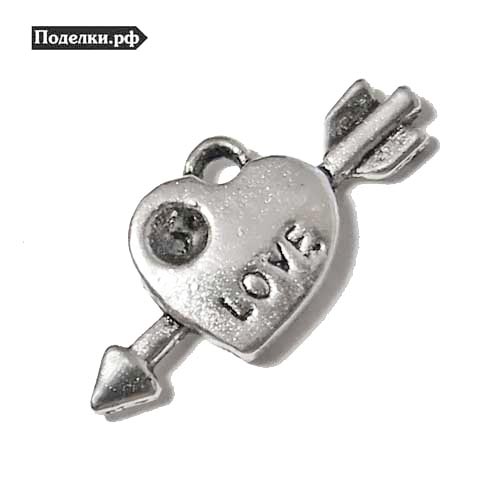 подвеска сердечко со стрелой 0007106 серебряный цвет 21x10 мм