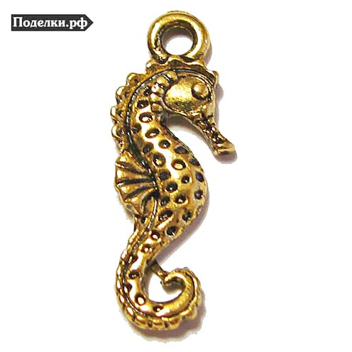 Подвеска Морской конек 0007107 золотой цвет 25x10 мм