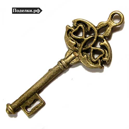 подвеска ключ резной 0007116 бронзовый цвет 45x17 мм