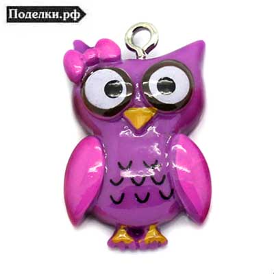 Подвеска Сова пластиковая 0007137 сиреневый цвет 25x16x6 мм