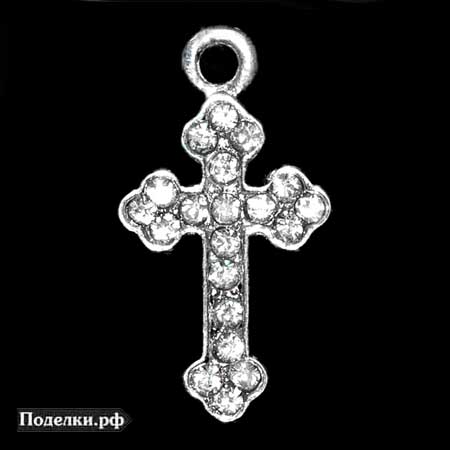 Подвеска Крестик 0007150 серебряный цвет с прозрачными стразами 23x12 мм