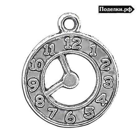 Подвеска Часы 0007155 серебряный цвет 21x18 мм