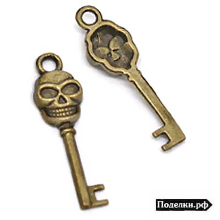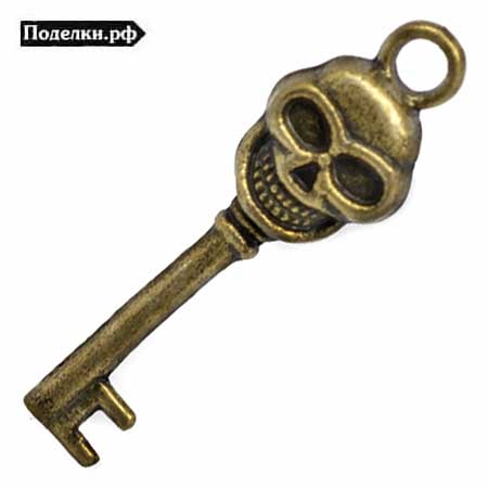 Подвеска Ключик с черепом 0007165 бронзовый цвет 33x10 мм