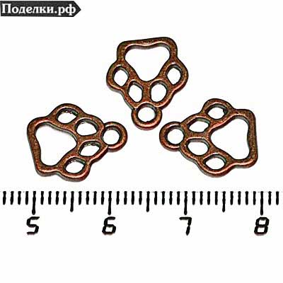 Подвеска Лапа прозрачная 0007168 медный цвет 13x11 мм