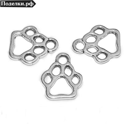 Подвеска Лапа прозрачная 0007169 серебряный цвет 13x11 мм