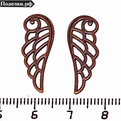 Подвеска Крыло прозрачное 0007175 медный цвет 25x8х1 мм