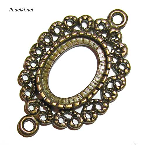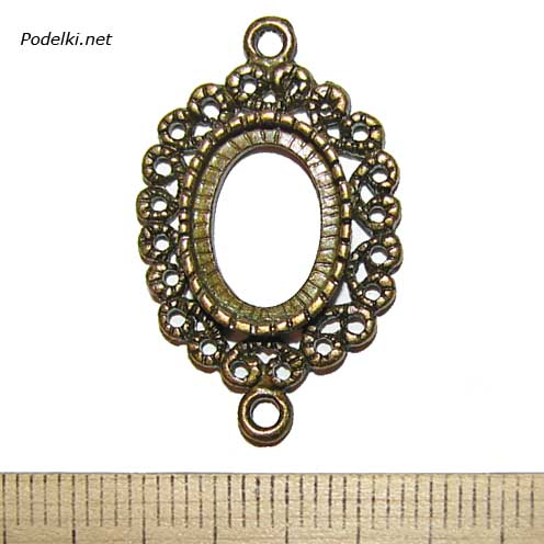 Коннектор-Рамка Узорная для овального кабошона 14x10 мм 0007428 бронзовый цвет 30x19 мм