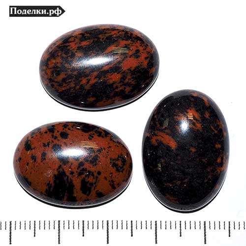 Кабошон натуральный камень Обсидиан 0007452 овальный 25x18 мм