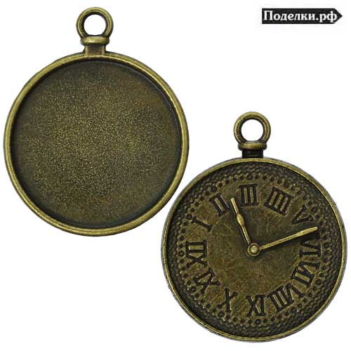 Рамка Часы для круглого кабошона 25 мм 0007456 бронзовый цвет 37x30 мм