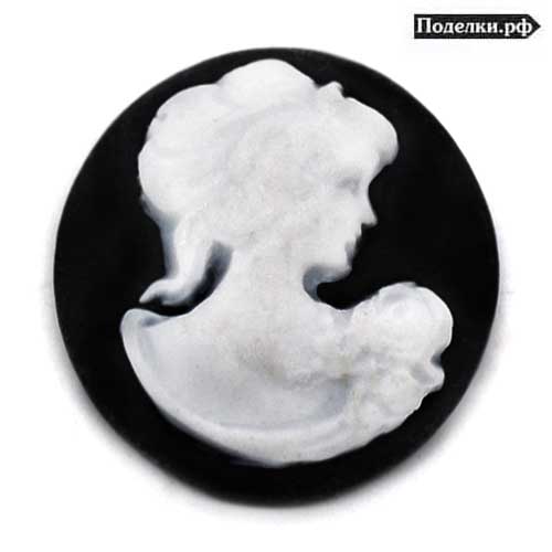 Кабошон-камея из смолы Женщина 0007461 черного цвета круглый 20 мм