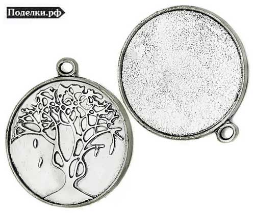 Рамка с Деревом для круглого кабошона 30 мм 0007480 серебряный цвет 36x31 мм