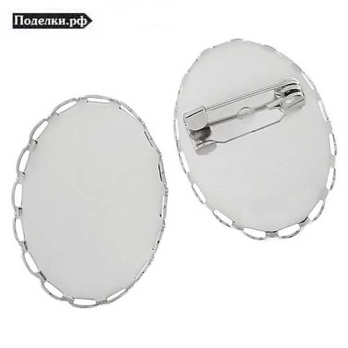 Брошь основа для овального кабошона 25x18 мм 0007484 серебряный цвет 26x19 мм
