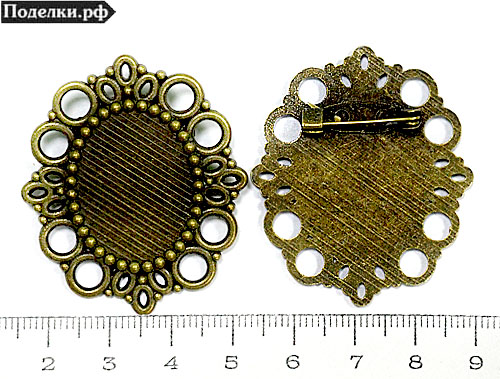 Брошь основа для овального кабошона ажурная 25x18 мм 0007493 бронзовый цвет 43x37 мм