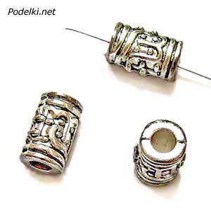 Металлическая бусина Цилиндрик 0007510 серебряный цвет 10x6 мм