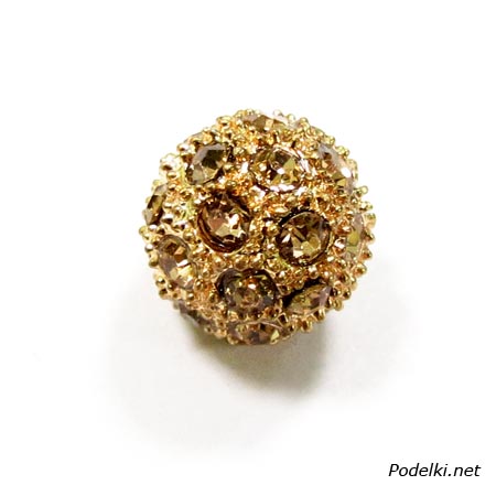 Металлическая бусина Шамбала 0007555 золотой цвет с золотыми стразами 12 мм