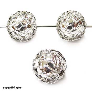 Металлическая бусина Шарик с сеточкой 0007565 серебряный цвет 10 мм
