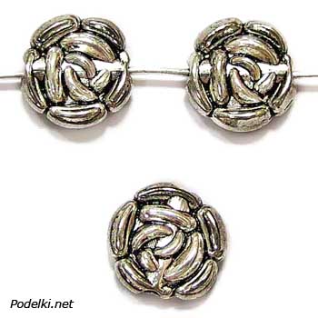 Металлическая бусина Роза плоская 0007566 серебряный цвет 10x4 мм