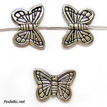 Металлическая бусина Бабочка Галатея 0007567 серебряный цвет 15x11 мм
