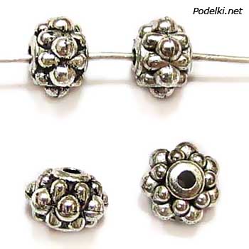 Металлическая бусина Цветок 0007575 серебряный цвет 9x4 мм