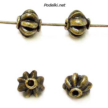Металлическая бусина Бутон средний простой 0007576 бронзовый цвет 6x6 мм