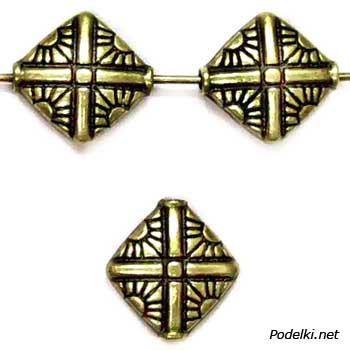 Металлическая бусина Ромб плоский 0007577 бронзовый цвет 12x12x4 мм