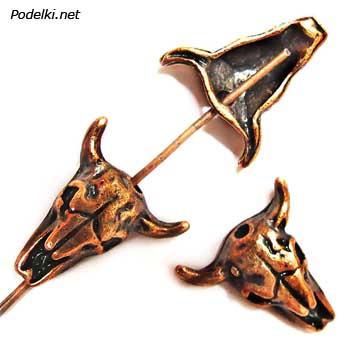 Металлическая бусина Череп коровий 0007583 медный цвет 14x12x3 мм