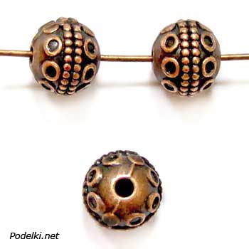 Металлическая бусина Шарик Восточный 0007585 медный цвет 9 мм