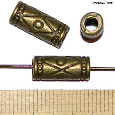 Металлическая бусина Цилиндр с узором 0007588 бронзовый цвет 14x6 мм